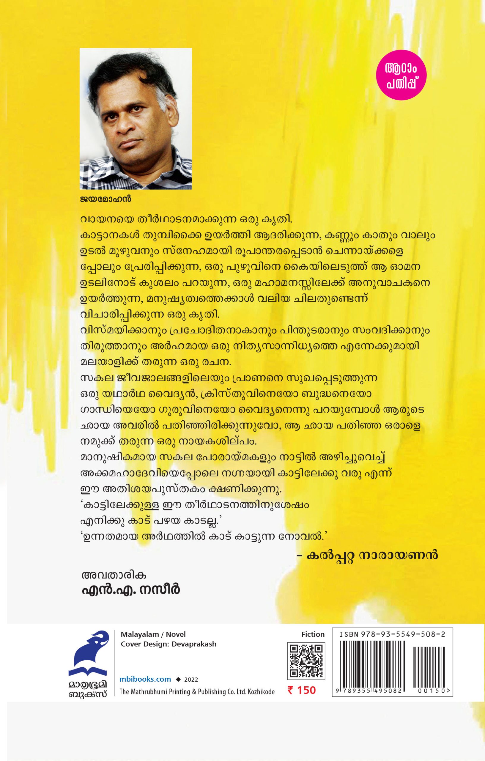വായനയെ തീര്ഥാടനമാക്കുന്ന ഒരു കൃതി. കാട്ടാനകള് തുമ്പിക്കെ ഉയര്ത്തി ആദരിക്കുന്ന, കണ്ണും കാതും വാലും ഉടല് മുഴുവനും സ്നേഹമായി രൂപാന്തരപ്പെടാന് ചെന്നായ്ക്കക്കളെപ്പോലും പ്രേരിപ്പിക്കുന്ന, ഒരു പുഴുവിനെ കൈയിലെടുത്ത് ആ ഓമന ഉടലിനോട് കുശലം പറയുന്ന, ഒരു മഹാമനസ്സിലേക്ക് അനുവാചകനെ ഉയര്ത്തുന്ന, മനുഷ്യത്വത്തെക്കാള് വലിയ ചിലതുണ്ടെന്ന് വിചാരിപ്പിക്കുന്ന ഒരു കൃതി.