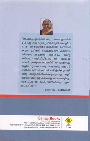 “ആശ്ചര്യചൂഡാമണിക്കു മലയാളത്തിൽ മികവുറ്റ ഒരു വ്യാഖ്യാനമെഴുതി കേരളീയരുടെ കൃതജ്ഞതാപാത്രമായി മാറിയിരിക്കുന്ന ശ്രീമതി രാധാമാധവൻ കലാസാഹിത്യമേഖലകളിൽ ഇതിനകം തന്റെ കഴിവു തെളിയിച്ചിട്ടുള്ള ഒരു വിദുഷിയാണ്. പ്രകൃത്രഗന്ഥത്തിന് സുവിശദവും ലളിതവുമായൊരു വ്യാഖ്യാനമാണ് ശ്രീമതി രാധാമാധവൻ രചിച്ചിരിക്കുന്നത്. ഇതു വിദ്യാർത്ഥികൾക്കുമാത്രമല്ല, കൂടിയാട്ടംപോലുള്ള കലകളെ ഗൗരവപൂർവ്വം സമീപിക്കുന്ന സഹൃദയന്മാർക്കും ഏറെ ഉപകരിക്കും.”