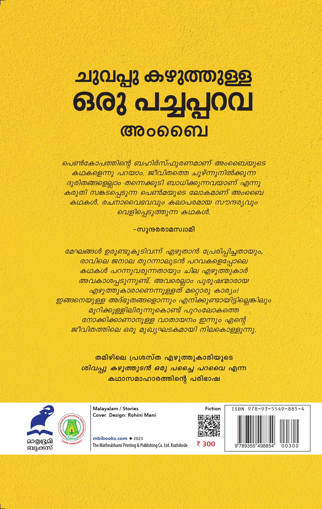 തമിഴിലെ പ്രശസ്ത എഴുത്തുകാരിയുടെ ശിവപ്പു കഴുത്തുടൻ ഒരു പച്ചൈ പറവൈ എന്ന കഥാസമാഹാരത്തിന്റെ പരിഭാഷ