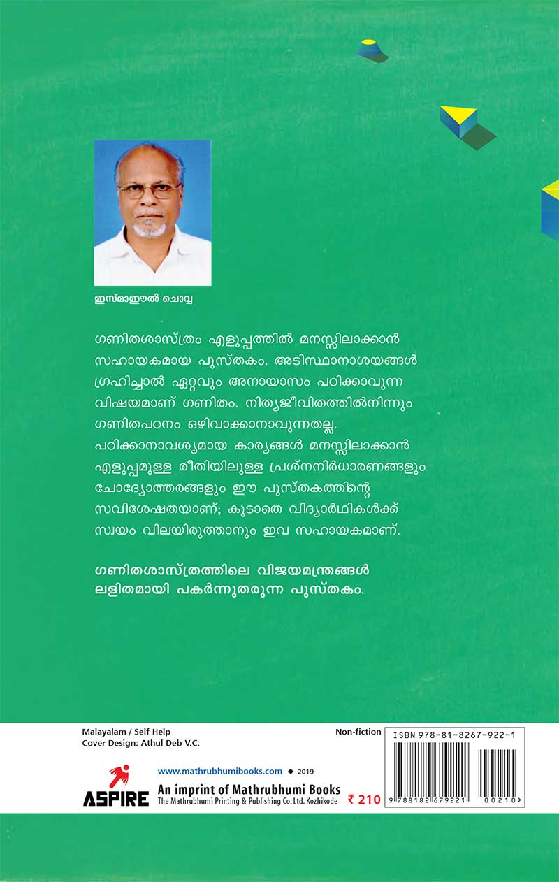 ഗണിതശാസ്ത്രം എളുപ്പത്തിൽ മനസ്സിലാക്കാൻ സഹായകമായ പുസ്തകം. അടിസ്ഥാനാശയങ്ങൾ ഗ്രഹിച്ചാൽ ഏറ്റവും അനായാസം പഠിക്കാവുന്ന വിഷയമാണ് ഗണിതം. നിത്യജീവിതത്തിൽനിന്നും ഗണിതപഠനം ഒഴിവാക്കാനാവുന്നതല്ല. പഠിക്കാനാവശ്യമായ കാര്യങ്ങൾ മനസ്സിലാക്കാൻ എളുപ്പമുള്ള രീതിയിലുള്ള പ്രശ്നനിർധാരണങ്ങളും ചോദ്യോത്തരങ്ങളും ഈ പുസ്തകത്തിന്റെ സവിശേഷതയാണ്; കൂടാതെ വിദ്യാർഥികൾക്ക് സ്വയം വിലയിരുത്താനും ഇവ സഹായകമാണ്.