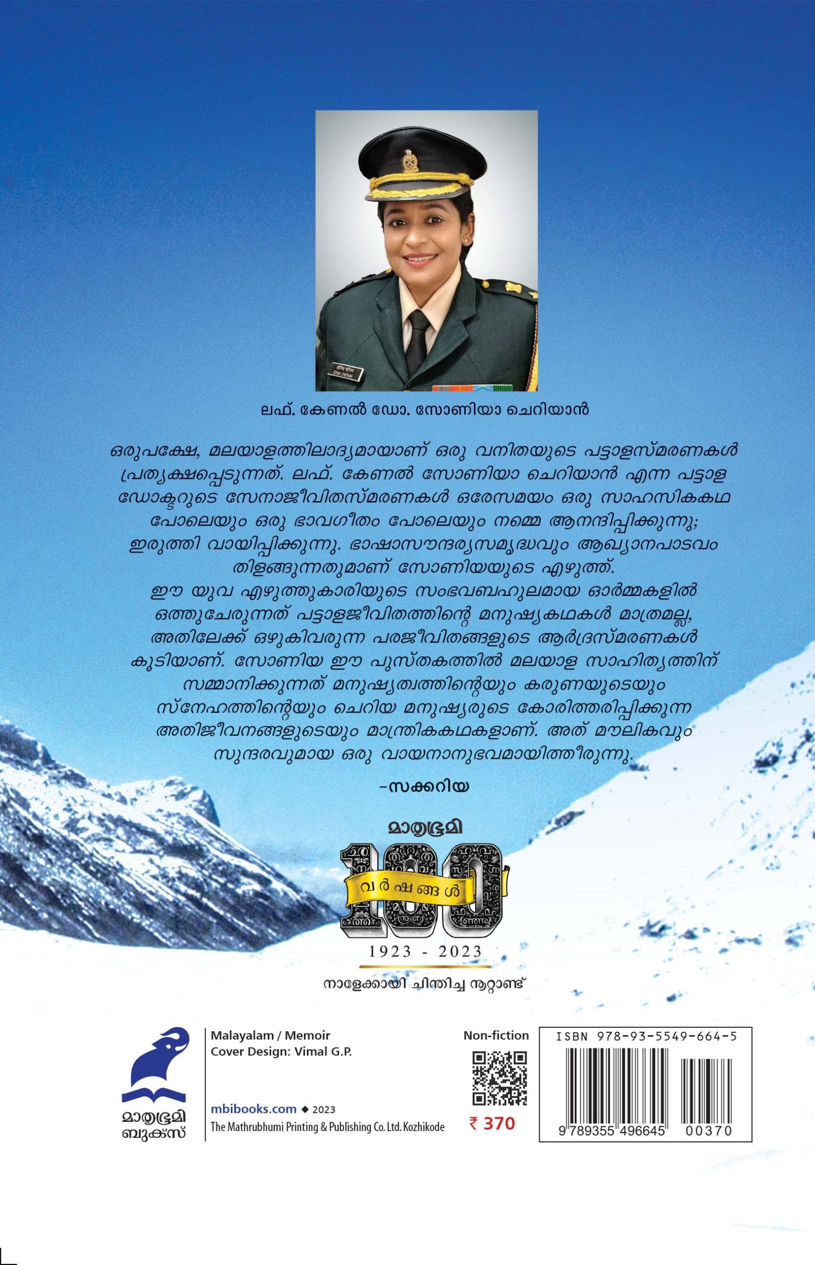ഒരുപക്ഷേ, മലയാളത്തിലാദ്യമായാണ് ഒരു വനിതയുടെ പട്ടാളസ്മരണകള് പ്രത്യക്ഷപ്പെടുന്നത്. ലഫ്. കേണല് സോണിയാ ചെറിയാന് എന്ന പട്ടാള ഡോക്ടറുടെ സേനാജീവിതസ്മരണകള് ഒരേസമയം ഒരു സാഹസികകഥ