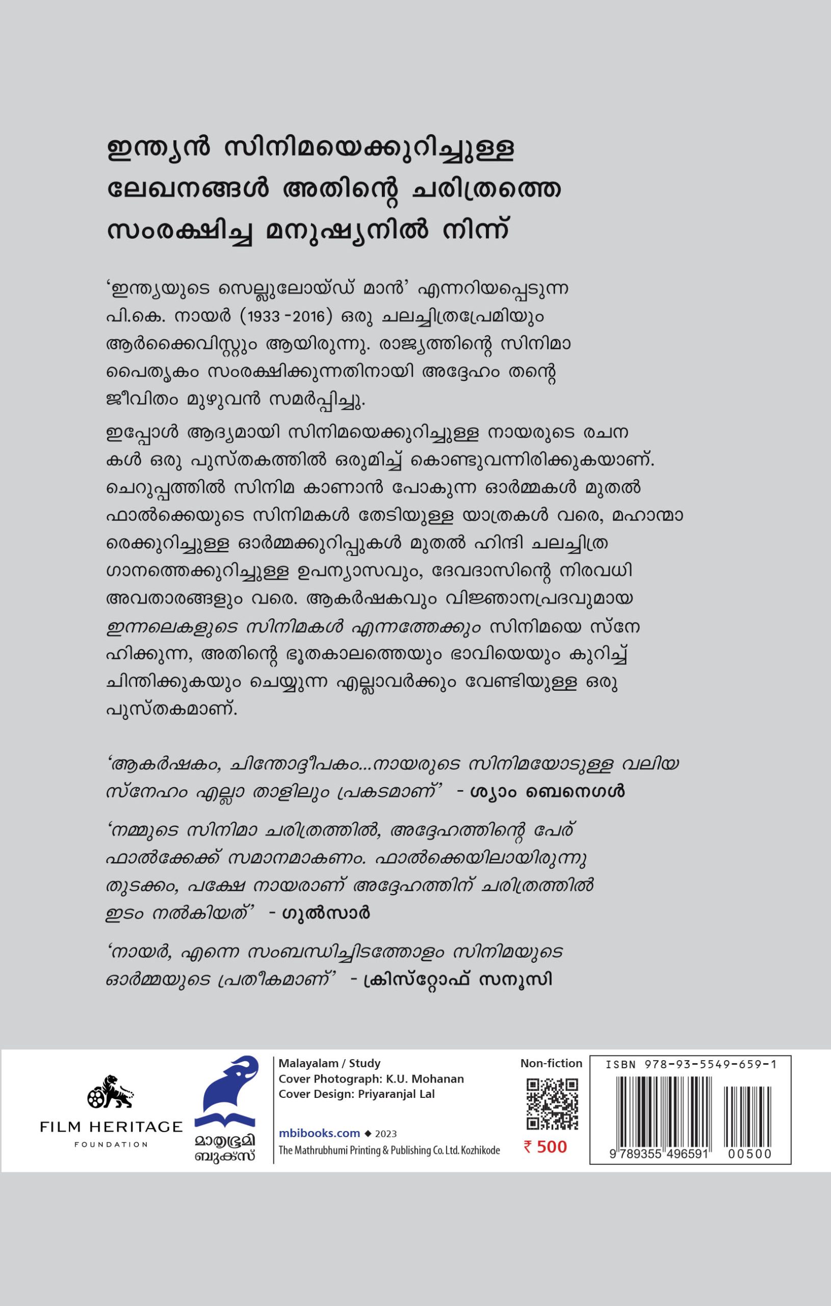 ഇപ്പോള് ആദ്യമായി സിനിമയെക്കുറിച്ചുള്ള നായരുടെ രചന കള് ഒരു പുസ്തകത്തില് ഒരുമിച്ച് കൊണ്ടുവന്നിരിക്കുകയാണ്. ചെറുപ്പത്തില് സിനിമ കാണാന് പോകുന്ന ഓര്മ്മകള് മുതല് ഫാല്ക്കെയുടെ സിനിമകള് തേടിയുള്ള യാത്രകള് വരെ, മഹാന്മാ രെക്കുറിച്ചുള്ള ഓര്മ്മക്കുറിപ്പുകള് മുതല് ഹിന്ദി ചലച്ചിത്ര ഗാനത്തെക്കുറിച്ചുള്ള ഉപന്യാസവും, ദേവദാസിന്റെ നിരവധി അവതാരങ്ങളും വരെ. ആകര്ഷകവും വിജ്ഞാനപ്രദവുമായ ഇന്നലെകളുടെ സിനിമകള് എന്നത്തേക്കും സിനിമയെ സ്നേ ഹിക്കുന്ന, അതിന്റെ ഭൂതകാലത്തെയും ഭാവിയെയും കുറിച്ച് ചിന്തിക്കുകയും ചെയ്യുന്ന എല്ലാവര്ക്കും വേണ്ടിയുള്ള ഒരു പുസ്തകമാണ്.