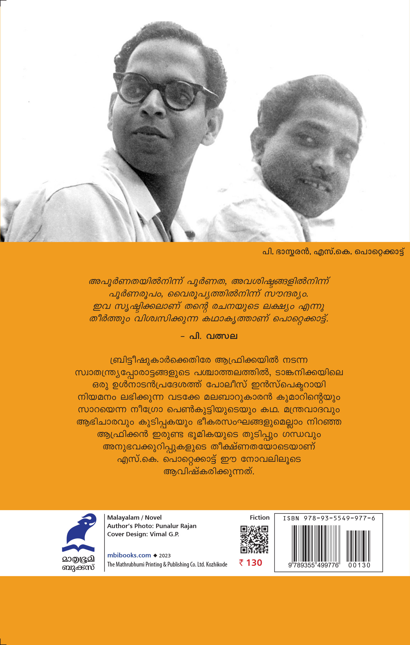 ബ്രിട്ടീഷുകാര്‍ക്കെതിരെ ആഫ്രിക്കയില്‍ നടന്ന സ്വാതന്ത്യപ്പോരാട്ടങ്ങളുടെ പശ്ചാത്തലത്തില്‍ , ടാങ്കനിക്കയിലെ ഒരു ഉള്‍നാടന്‍ പ്രദേശത്ത് പോലീസ് ഇന്‍സ്‌പെക്ടറായി നിയമനം ലഭിക്കുന്ന വടക്കേമലബാറുകാരന്‍ കുമറിന്റെയും സാറയെന്ന നീഗ്രോപെണ്‍കുട്ടിയുടെയും കഥ. മന്ത്രവാദവും ആഭിചാരവും കുടിപ്പകയും ഭീകരസംഘങ്ങളുമെല്ലാം നിറഞ്ഞ ആഫ്രിക്കന്‍ ഇരുണ്ടഭൂമികയുടെ തുടിപ്പും ഗന്ധവും അനുഭവക്കുറിപ്പുകളുടെ തീക്ഷ്ണതയോടെയാണ് എസ്.കെ.ആവിഷ്‌കരിക്കുന്നത്.