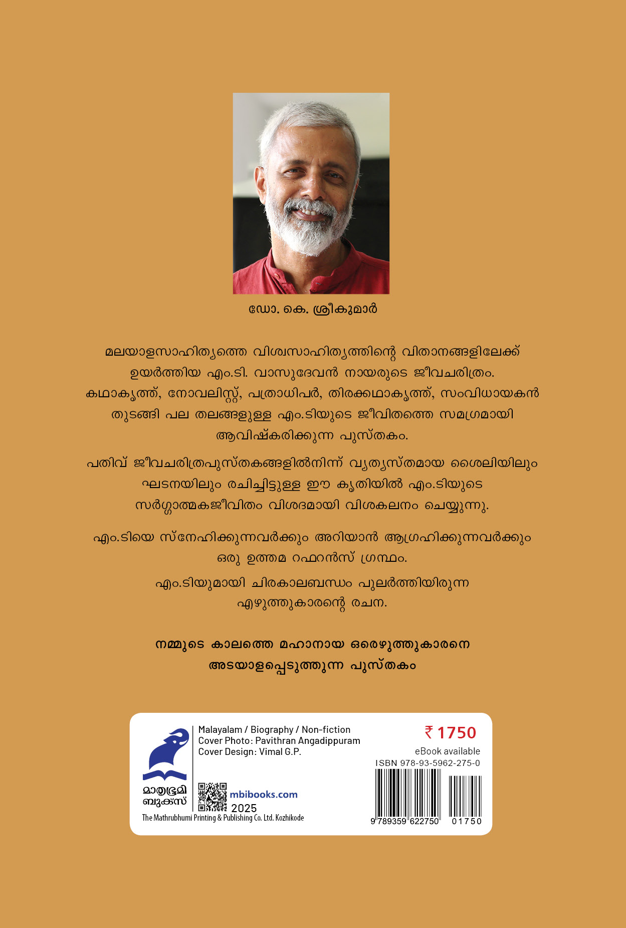 എട്ടു നോവലുകള്, പത്തൊന്പതു കഥാസമാഹാരങ്ങള്, നാലു ബാലസാഹിത്യകൃതികള്, മൂന്നു സാഹിത്യപഠനങ്ങള്, ഉപന്യാസ സമാഹാരങ്ങള്, നാലു യാത്രാവിവരണകൃതികള്, ഒരു നാടകം, ഒരു പ്രസംഗസമാഹാരം എന്നിങ്ങനെ നാല്പ്പത്തൊമ്പതു പുസ്തകങ്ങളിലായി അദ്ദേഹത്തിന്റെ സാഹിത്യം പരന്നുകിടക്കുന്നു. ഇതിനു പുറമേയാണ് ഒറ്റയായും സമാഹാരങ്ങളായും പുറത്തിറങ്ങിയ തിരക്കഥകള്. 1992 മുതല് തുഞ്ചന് സ്മാരക സമിതി ചെയര്മാനായിരുന്നു. 1995-2001 കാലത്ത് കേരള സാഹിത്യ അക്കാദമി പ്രസിഡന്റായിരുന്നു. 2024 ഡിസംബര് 25ന് അന്തരിച്ചു. 2025-ല് മരണാനന്തര ബഹുമതിയായി പത്മവിഭൂഷണ് ലഭിച്ചു.
