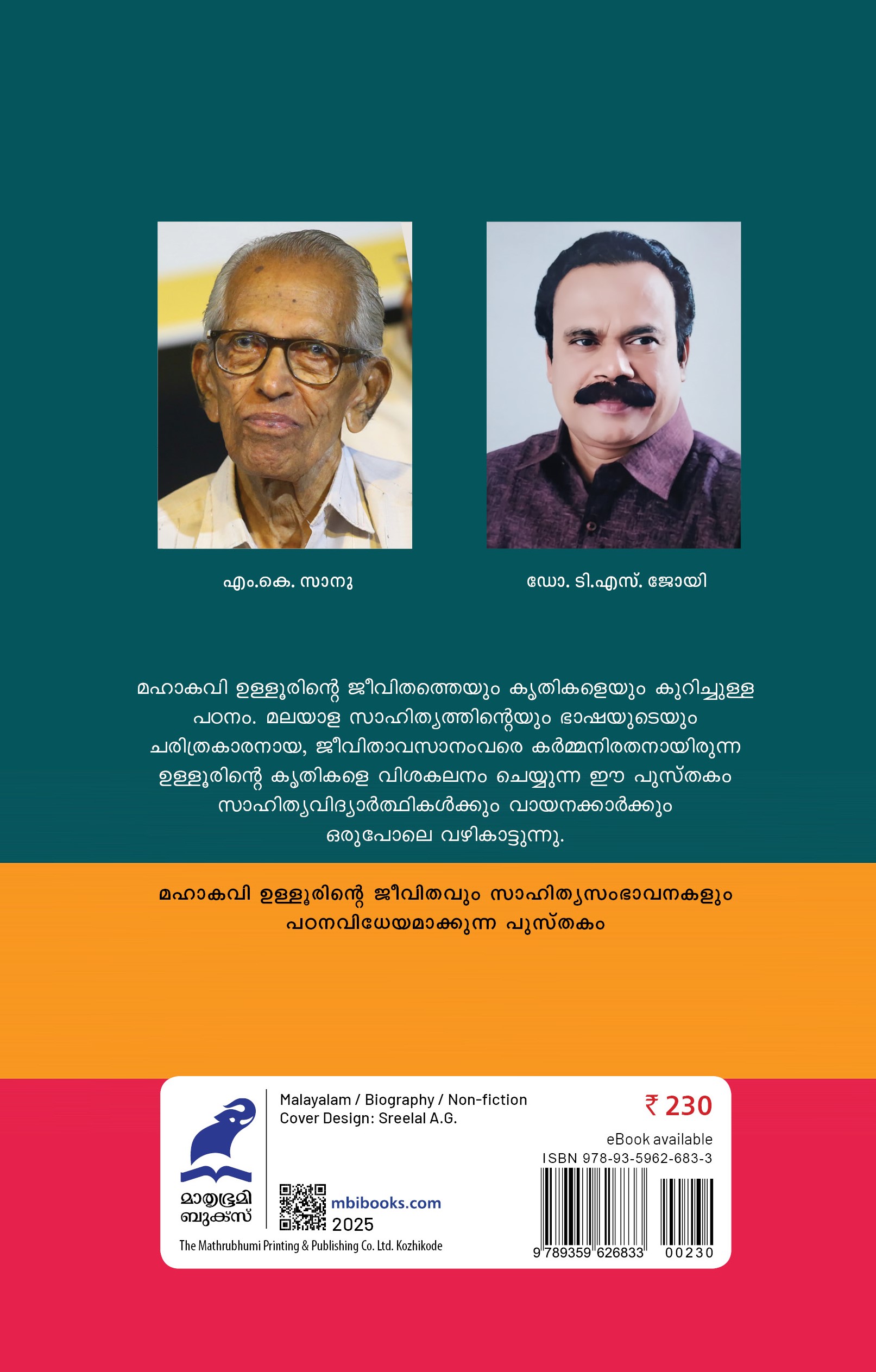 മഹാകവി ഉള്ളൂരിന്റെ ജീവിതവും സാഹിത്യസംഭാവനകളും പഠനവിധേയമാക്കുന്ന പുസ്തകം
