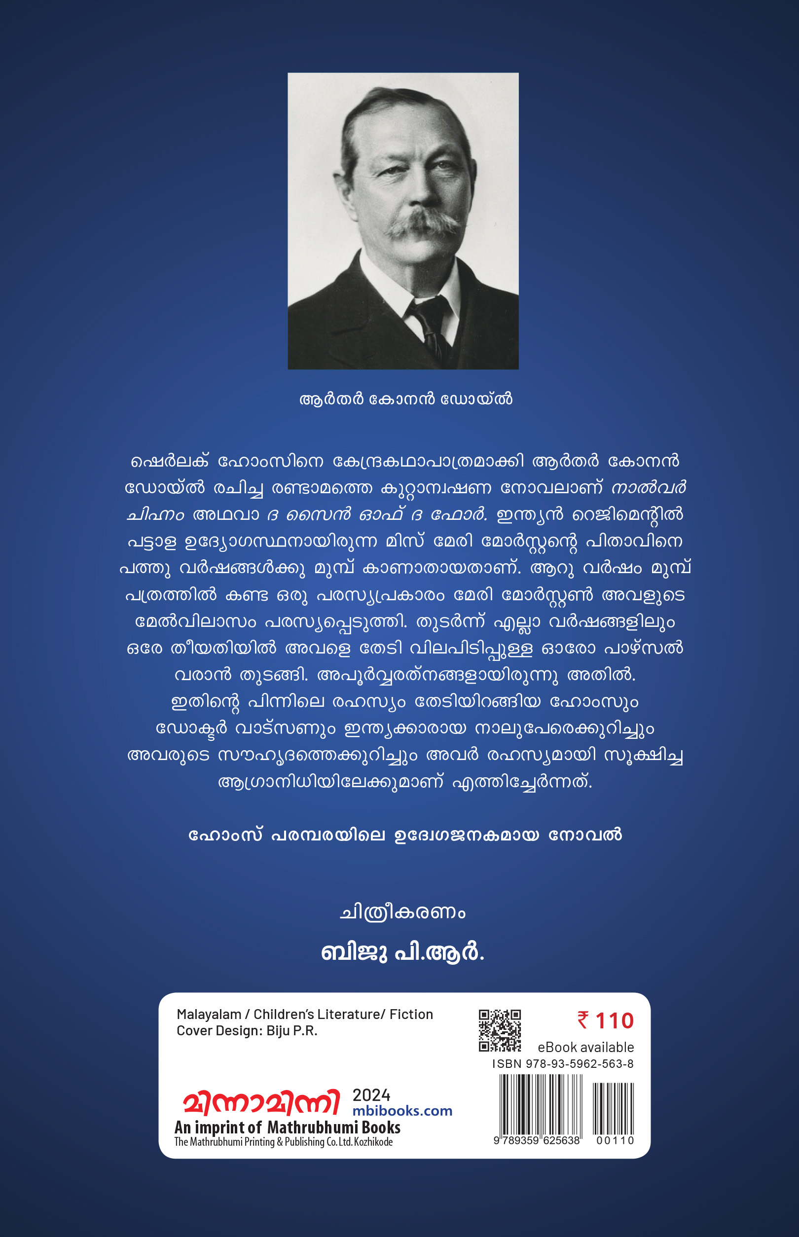 ഷെര്ലക് ഹോംസിനെ കേന്ദ്രകഥാപാത്രമാക്കി ആര്തര് കോനന് ഡോയ്ല് രചിച്ച രണ്ടാമത്തെ കുറ്റാന്വഷണ നോവലാണ് നാല്വര് ചിഹ്നം അഥവാ ദ സൈന് ഓഫ് ദ ഫോര്. ഇന്ത്യന് റെജിമെന്റില് പട്ടാള ഉദ്യോഗസ്ഥനായിരുന്ന മിസ് മേരി മോര്സ്റ്റന്റെ പിതാവിനെ പത്തു വര്ഷങ്ങള്ക്കു മുമ്പ് കാണാതായതാണ്. ആറു വര്ഷം മുമ്പ് പത്രത്തില് കണ്ട ഒരു പരസ്യപ്രകാരം മേരി മോര്സ്റ്റണ് അവളുടെ മേല്വിലാസം പരസ്യപ്പെടുത്തി. തുടര്ന്ന് എല്ലാ വര്ഷങ്ങളിലും ഒരേ തീയതിയില് അവളെ തേടി വിലപിടിപ്പുള്ള ഓരോ പാഴ്സല് വരാന് തുടങ്ങി. അപൂര്വ്വരത്നങ്ങളായിരുന്നു അതില്. ഇതിന്റെ പിന്നിലെ രഹസ്യം തേടിയിറങ്ങിയ ഹോംസും ഡോക്ടര് വാട്സണും ഇന്ത്യക്കാരായ നാലുപേരെക്കുറിച്ചും അവരുടെ സൗഹൃദത്തെക്കുറിച്ചും അവര് രഹസ്യമായി സൂക്ഷിച്ച ആഗ്രാനിധിയിലേക്കുമാണ് എത്തിച്ചേര്ന്നത്.