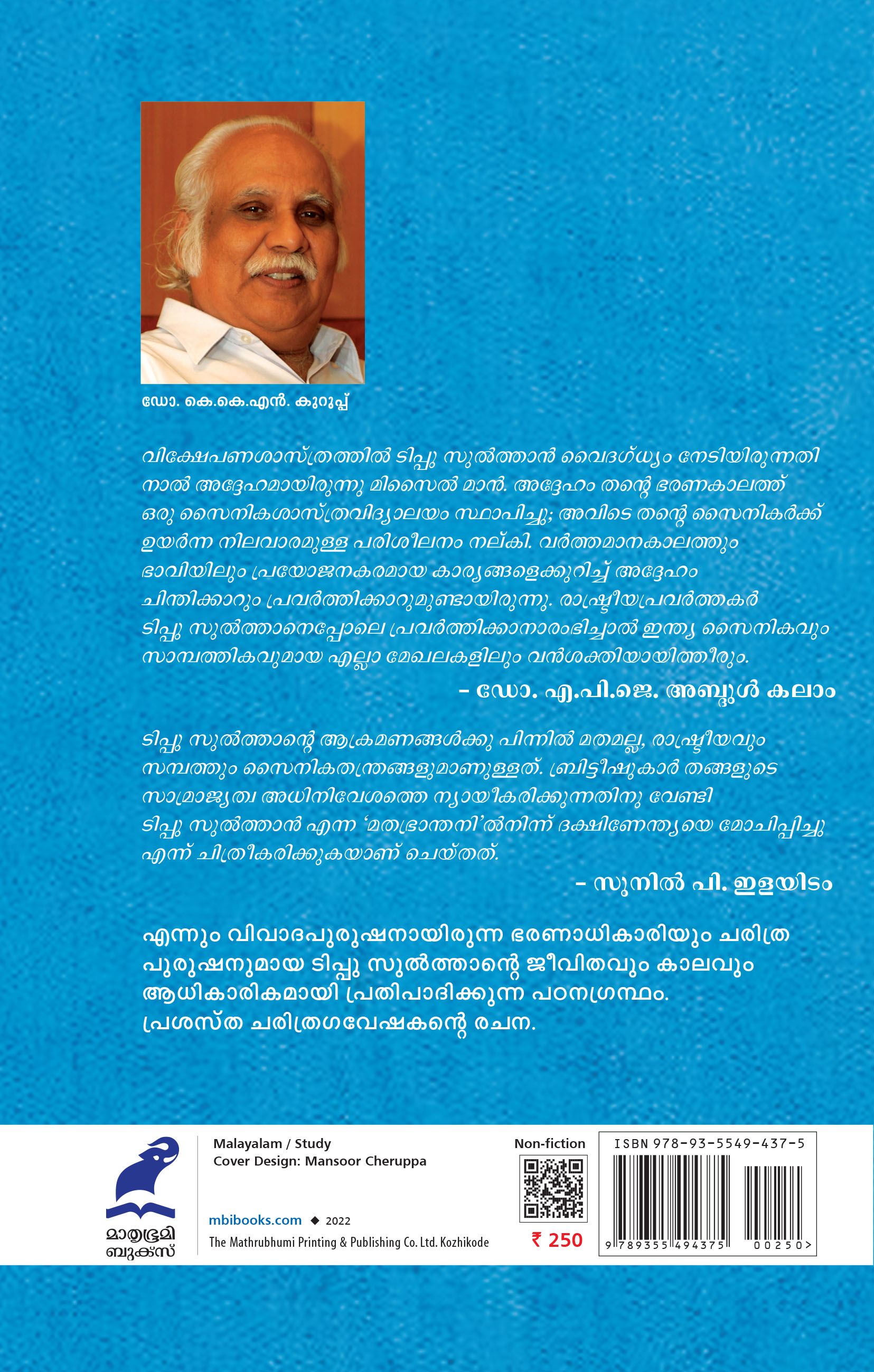 എന്നും വിവാദപുരുഷനായിരുന്ന ഭരണാധികാരിയും ചരിത്രപുരുഷനുമായ ടിപ്പു സുല്ത്താന്റെ ജീവിതവും കാലവും