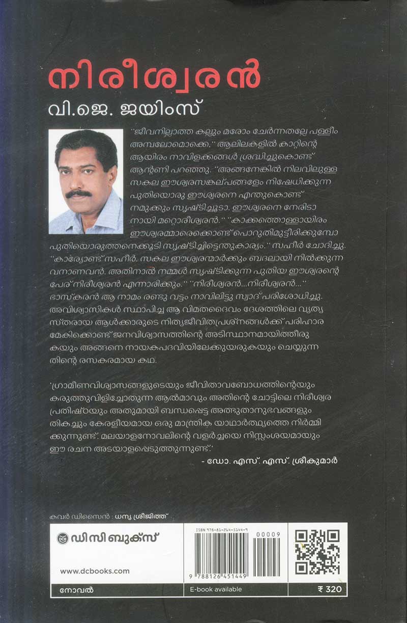 “ജീവനില്ലാത്ത കല്ലും മരോം ചേർന്നതല്ലേ പളളീം അമ്പലോമൊക്കെ,” ആലിലകളിൽ കാറ്റിന്റെ ആയിരം നാവിളക്കങ്ങൾ ശ്രദ്ധിച്ചുകൊണ്ട് ആന്റണി പറഞ്ഞു. “അങ്ങനേങ്കിൽ നിലവിലുളള സകല ഈശ്വരസങ്കല്പങ്ങളേം നിഷേധിക്കുന്ന പുതിയൊരു ഈശ്വരനെ എന്തുകൊണ്ട് നമുക്കും സൃഷ്ടിച്ചൂടാ. ഈശ്വരനെ നേരിടാനായി മറ്റൊരീശ്വരൻ.” “കാക്കത്തൊള്ളായിരം ഈശ്വരന്മാരെക്കൊണ്ട് പൊറുതിമുട്ടീരിക്കുമ്പോ പുതിയൊരുത്തനെക്കൂടി സൃഷ്ടിച്ചിട്ടെന്തുകാര്യം.” സഹീർ ചോദിച്ചു. “കാര്യോണ്ട്‌ സഹീർ. സകല ഈശ്വരന്മാർക്കും ബദലായി നിൽക്കുന്നവനാണവൻ. അതിനാൽ നമ്മൾ സൃഷ്ടിക്കുന്ന പുതിയ ഈശ്വരന്റെ പേര് നിരീശ്വരൻ എന്നാരിക്കും.” ‘”നിരീശ്വരൻ… നിരീശ്വരൻ…” ഭാസ്കരൻ ആ നാമം രണ്ടു വട്ടം നാവിലിട്ടു സ്വാദ് പരിശോധിച്ചു. അവിശ്വാസികൾ സ്ഥാപിച്ച ആ വിമതദൈവം ദേശത്തിലെ വ്യത്യ സ്തരായ ആൾക്കാരുടെ നിത്യജീവിതപ്രശ്നങ്ങൾക്ക് പരിഹാര മേകിക്കൊണ്ട് ജനവിശ്വാസത്തിന്റെ അടിസ്ഥാനമായിത്തീരു കയും അങ്ങനെ നായകപദവിയിലേക്കുയരുകയും ചെയ്യുന്നതിന്റെ രസകരമായ കഥ.