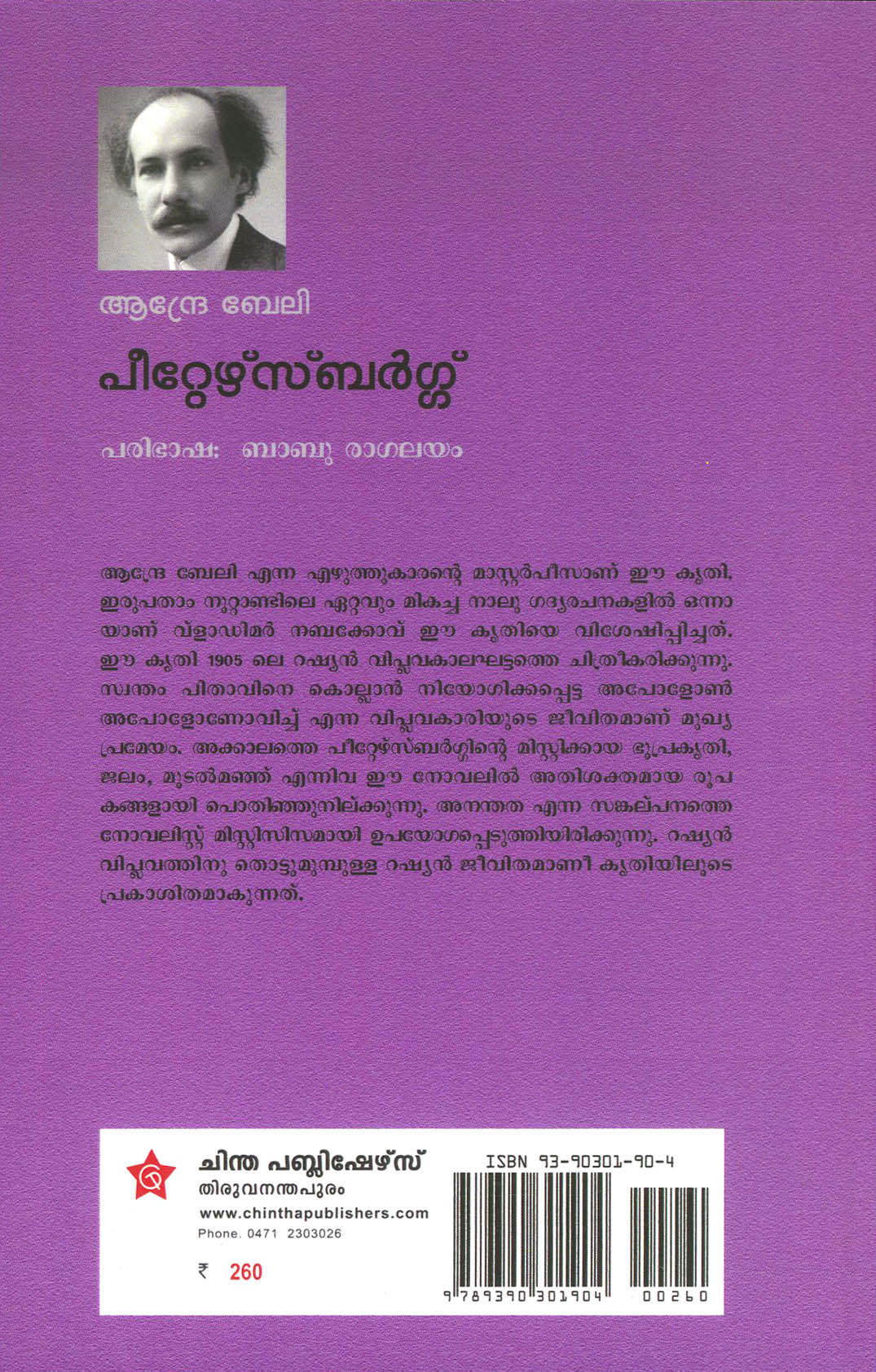 ആന്ദ്ര ബേലി എന്ന എഴുത്തുകാരന്റെ മാസ്റ്റർപീസാണ് ഈ കൃതി. ഇരുപതാം നൂറ്റാണ്ടിലെ ഏറ്റവും മികച്ച നാലു ഗദ്യരചനകളിൽ ഒന്നാ യാണ് വ്ളാഡിമർ നബക്കോവ് ഈ കൃതിയെ വിശേഷിപ്പിച്ചത്. ഈ ക്യതി 1905 ലെ റഷ്യൻ വിപ്ലവകാലഘട്ടത്ത് ചിത്രീകരിക്കുന്നു സ്വന്തം പിതാവിനെ കൊല്ലാൻ നിയോഗിക്കപ്പെട്ട അപോളോൺ അപോളോണോവിച്ച് എന്ന വിപ്ലവകാരിയുടെ ജീവിതമാണ് മുഖ്യ പ്രമേയം. അക്കാലത്തെ പീറ്റേഴ്സ്ബർഗ്ഗിന്റെ മിസ്റ്റിക്കായ ഭൂപ്രകൃതി, ജലം, മൂടൽ മഞ്ഞ് എന്നിവ ഈ നോവലിൽ അതിശക്തമായ രൂപകങ്ങളായി പൊതിഞ്ഞുനില്ക്കുന്നു. അനന്തത എന്ന സങ്കല്പനത്ത നോവലിസ്റ്റ് മിസ്റ്റിസിസമായി ഉപയോഗപ്പെടുത്തിയിരിക്കുന്നു. റഷ്യൻ വിപ്ലവത്തിനു തൊട്ടുമുമ്പുള്ള റഷ്യൻ ജീവിതമാണീ കൃതിയിലുടെ പ്രകാശിതമാകുന്നത്.