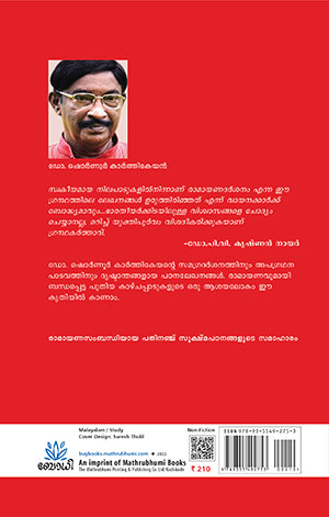 ഡോ. ഷൊർണൂർ കാർത്തികേയന്റെ സമഗ്രദർശനത്തിനും അപഗ്രഥന പാടവത്തിനും ദൃഷ്ടാന്തങ്ങളായ പഠനലേഖനങ്ങൾ. രാമായണവുമായി ബന്ധപ്പെട്ട് പുതിയ കാഴ്ചപ്പാടുകളുടെ ഒരു ആശയലോകം ഈ കൃതിയിൽ കാണാം.