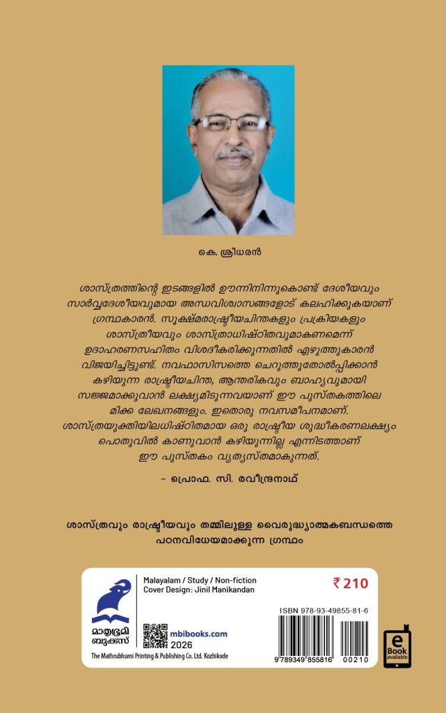 ശാസ്ത്രത്തിന്റെ ഇടങ്ങളില് ഊന്നിനിന്നുകൊണ്ട് ദേശീയവും സാര്വ്വദേശീയവുമായ അന്ധവിശ്വാസങ്ങളോട് കലഹിക്കുകയാണ് ഗ്രന്ഥകാരന്. സൂക്ഷ്മരാഷ്ട്രീയചിന്തകളും പ്രക്രിയകളും ശാസ്ത്രീയവും ശാസ്ത്രാധിഷ്ഠിതവുമാകണമെന്ന് ഉദാഹരണസഹിതം വിശദീകരിക്കുന്നതില് എഴുത്തുകാരന് വിജയിച്ചിട്ടുണ്ട്. നവഫാസിസത്തെ ചെറുത്തുതോല്പ്പിക്കാന് കഴിയുന്ന രാഷ്ട്രീയചിന്ത, ആന്തരികവും ബാഹ്യവുമായി സജ്ജമാക്കുവാന് ലക്ഷ്യമിടുന്നവയാണ് ഈ പുസ്തകത്തിലെ മിക്ക ലേഖനങ്ങളും. ഇതൊരു നവസമീപനമാണ്. ശാസ്ത്രയുക്തിയിലധിഷ്ഠിതമായ ഒരു രാഷ്ട്രീയ ശുദ്ധീകരണലക്ഷ്യം പൊതുവില് കാണുവാന് കഴിയുന്നില്ല എന്നിടത്താണ് ഈ പുസ്തകം വ്യത്യസ്തമാകുന്നത്.