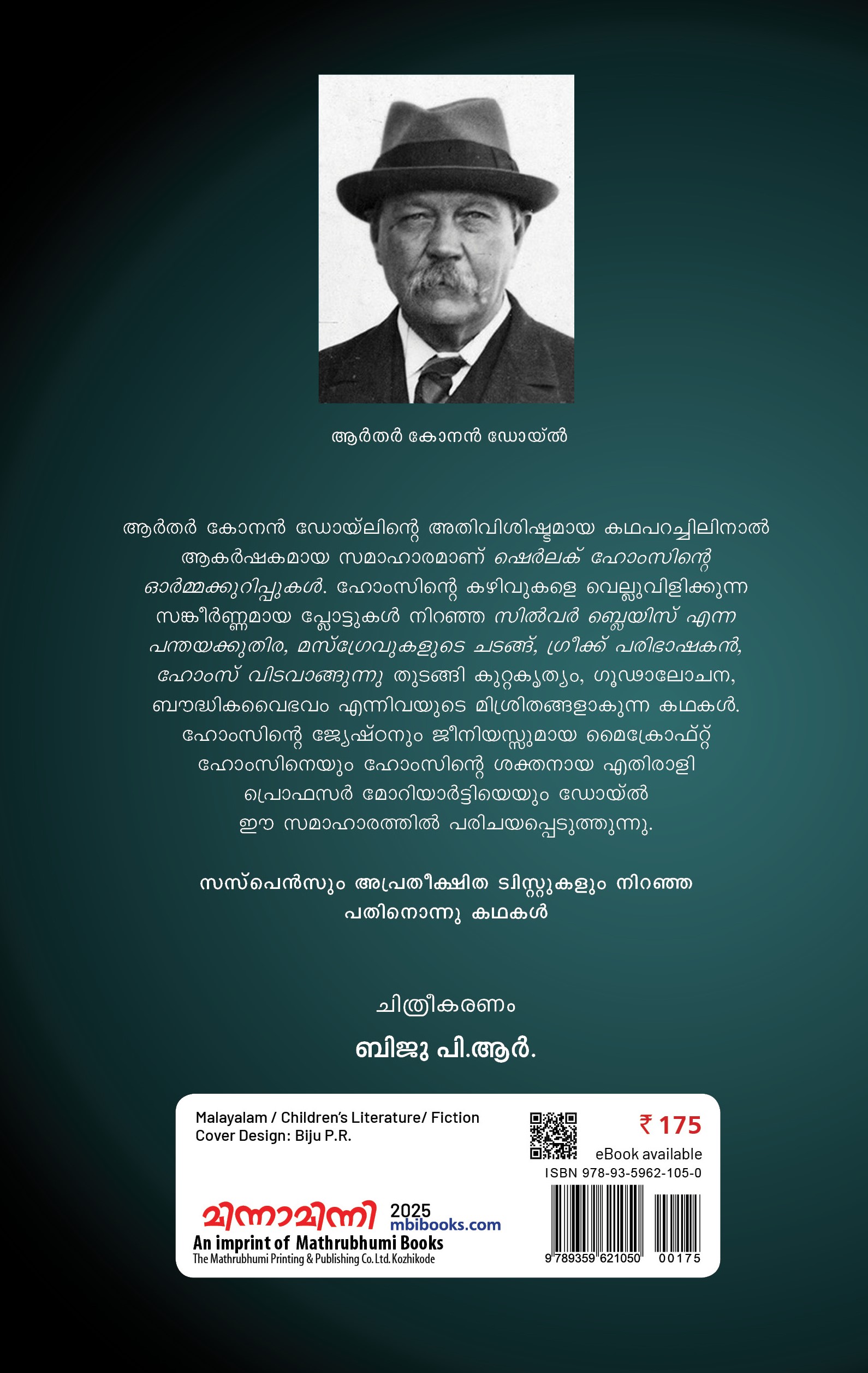 ആര്തര് കോനന് ഡോയ്ലിന്റെ അതിവിശിഷ്ടമായ കഥപറച്ചിലിനാല് ആകര്ഷകമായ സമാഹാരമാണ് ഷെര്ലക് ഹോംസിന്റെ ഓര്മ്മക്കുറിപ്പുകള്. ഹോംസിന്റെ കഴിവുകളെ വെല്ലുവിളിക്കുന്ന സങ്കീര്ണ്ണമായ പ്ലോട്ടുകള് നിറഞ്ഞ സില്വര് ബ്ലെയിസ് എന്ന പന്തയക്കുതിര, മസ്ഗ്രേവുകളുടെ ചടങ്ങ്, ഗ്രീക്ക് പരിഭാഷകന്, ഹോംസ് വിടവാങ്ങുന്നു തുടങ്ങി കുറ്റകൃത്യം, ഗൂഢാലോചന, ബൗദ്ധികവൈഭവം എന്നിവയുടെ മിശ്രിതങ്ങളാകുന്ന കഥകള്. ഹോംസിന്റെ ജ്യേഷ്ഠനും ജീനിയസ്സുമായ മൈക്രോഫ്റ്റ് ഹോംസിനെയും ഹോംസിന്റെ ശക്തനായ എതിരാളി പ്രൊഫസര് മോറിയാര്ട്ടിയെയും ഡോയ്ല് ഈ സമാഹാരത്തില് പരിചയപ്പെടുത്തുന്നു.