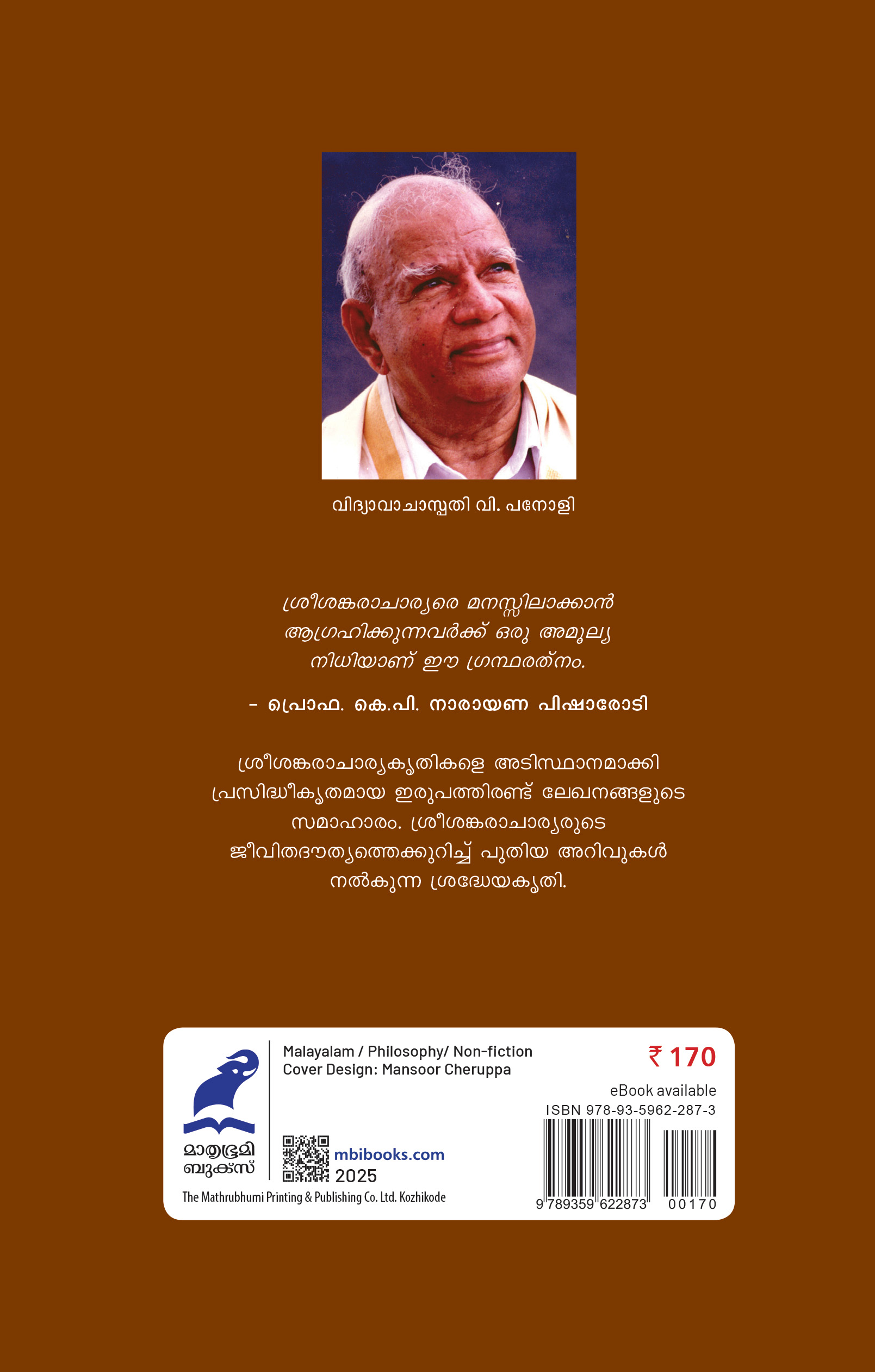 ശ്രീശങ്കരാചാര്യകൃതികളെ അടിസ്ഥാനമാക്കി പ്രസിദ്ധീകൃതമായ ഇരുപത്തിരണ്ട് ലേഖനങ്ങളുടെ സമാഹാരം. ശ്രീശങ്കരാചാര്യരുടെ ജീവിതദൗത്യത്തെക്കുറിച്ച് പുതിയ അറിവുകള് നല്കുന്ന ശ്രദ്ധേയകൃതി.