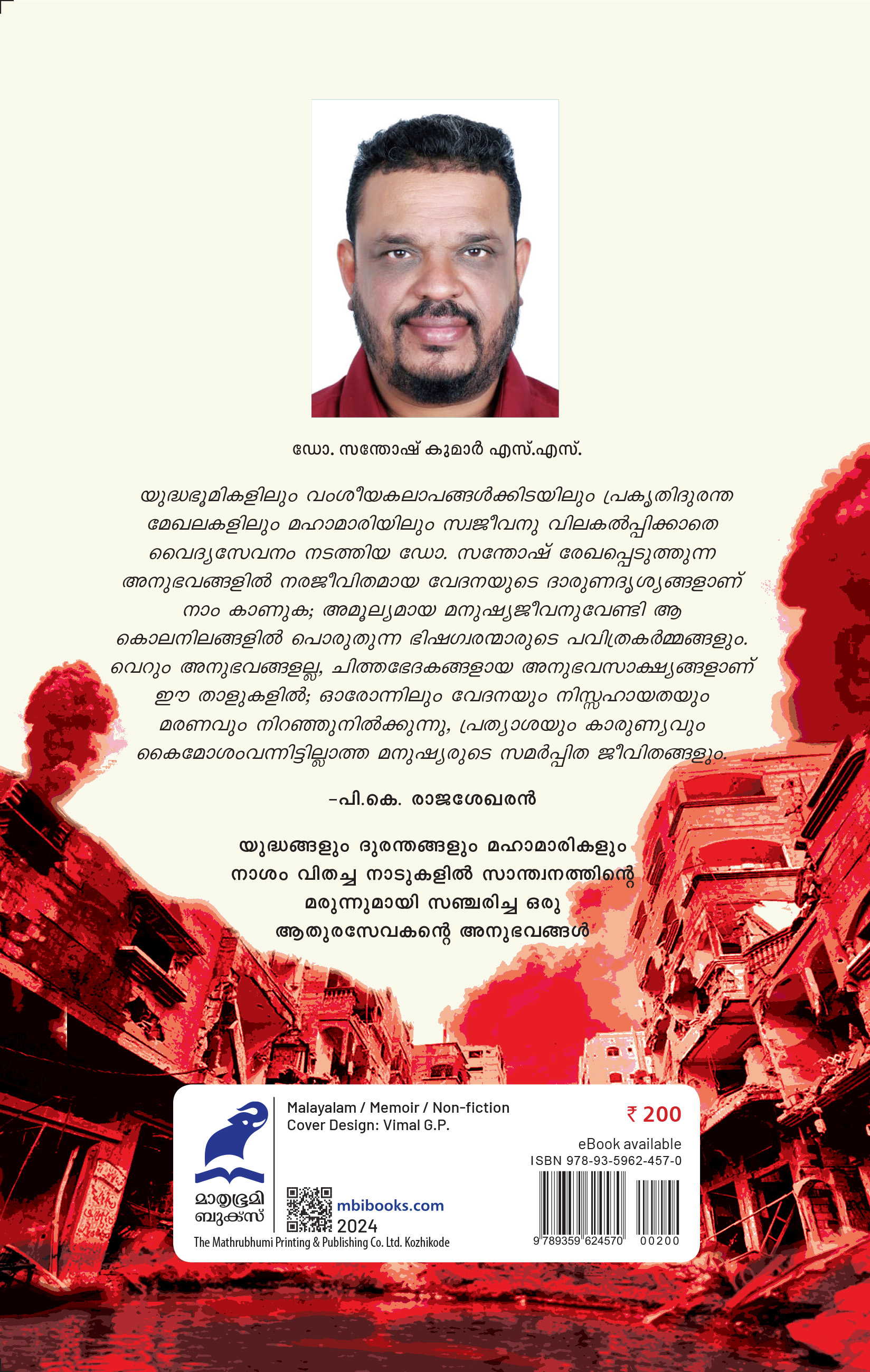 യുദ്ധങ്ങളും ദുരന്തങ്ങളും മഹാമാരികളും നാശം വിതച്ച നാടുകളില് സാന്ത്വനത്തിന്റെ മരുന്നുമായി സഞ്ചരിച്ച ഒരു ആതുരസേവകന്റെ അനുഭവങ്ങള്
