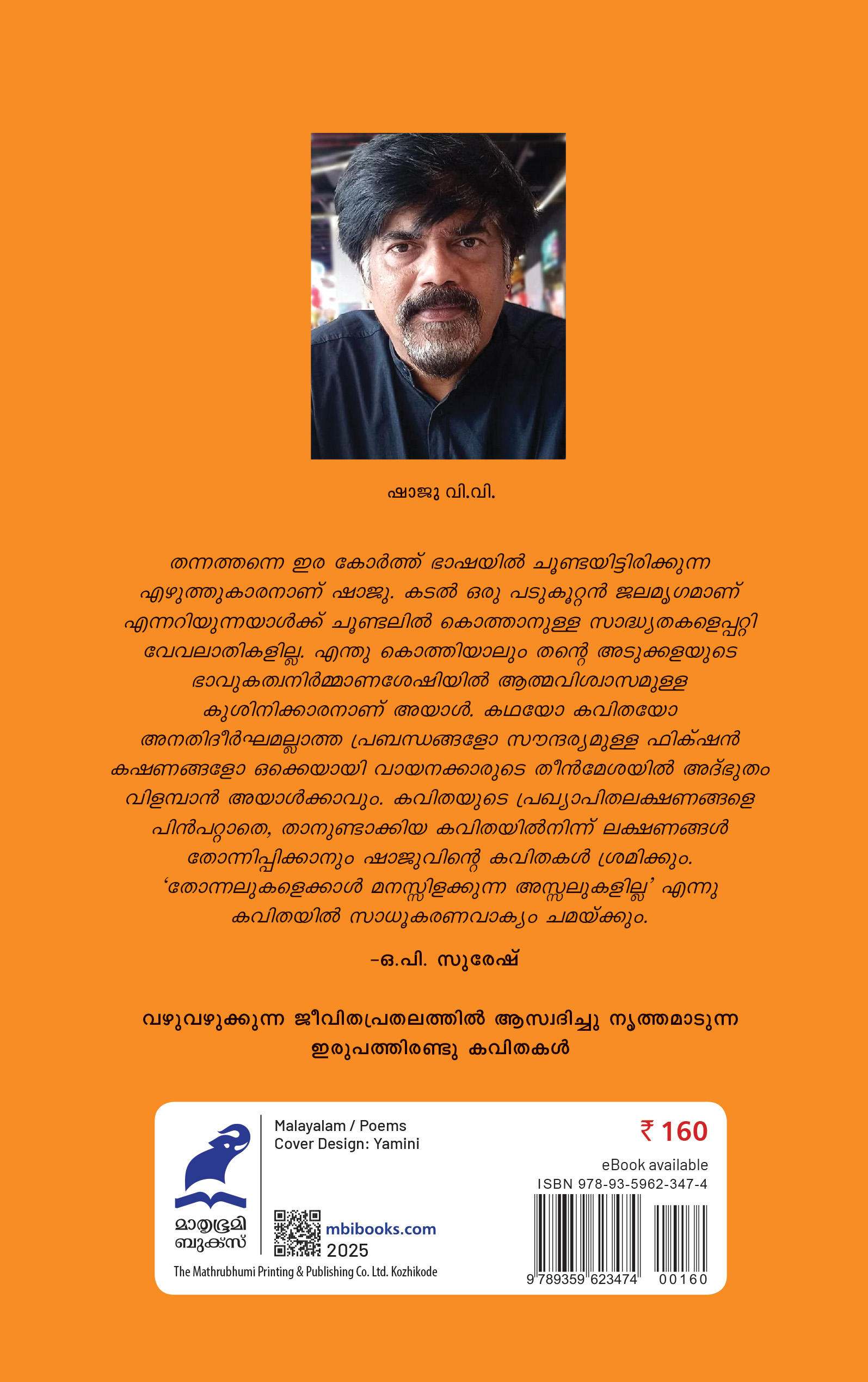 തന്നത്തന്നെ ഇര കോര്ത്ത് ഭാഷയില് ചൂണ്ടയിട്ടിരിക്കുന്ന എഴുത്തുകാരനാണ് ഷാജു. കടല് ഒരു പടുകൂറ്റന് ജലമൃഗമാണ് എന്നറിയുന്നയാള്ക്ക് ചൂണ്ടലില് കൊത്താനുള്ള സാദ്ധ്യതകളെപ്പറ്റി വേവലാതികളില്ല. എന്തു കൊത്തിയാലും തന്റെ അടുക്കളയുടെ ഭാവുകത്വനിര്മ്മാണശേഷിയില് ആത്മവിശ്വാസമുള്ള കുശിനിക്കാരനാണ് അയാള്. കഥയോ കവിതയോ അനതിദീര്ഘമല്ലാത്ത പ്രബന്ധങ്ങളോ സൗന്ദര്യമുള്ള ഫിക്ഷന് കഷണങ്ങളോ ഒക്കെയായി വായനക്കാരുടെ തീന്മേശയില് അദ്ഭുതം വിളമ്പാന് അയാള്ക്കാവും. കവിതയുടെ പ്രഖ്യാപിതലക്ഷണങ്ങളെ പിന്പറ്റാതെ, താനുണ്ടാക്കിയ കവിതയില്നിന്ന് ലക്ഷണങ്ങള് തോന്നിപ്പിക്കാനും ഷാജുവിന്റെ കവിതകള് ശ്രമിക്കും. ‘തോന്നലുകളെക്കാള് മനസ്സിളക്കുന്ന അസ്സലുകളില്ല’ എന്നു കവിതയില് സാധൂകരണവാക്യം ചമയ്ക്കും.